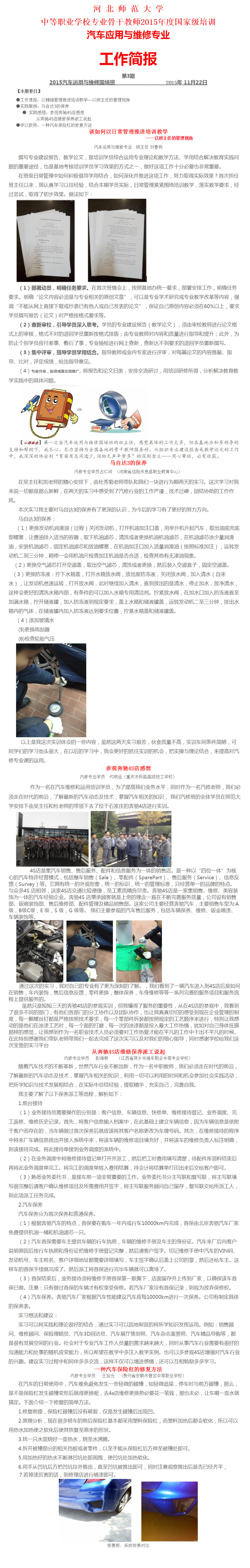2015 年全国中职学校“汽车应用与维修”专业骨干教师培训工作简报(第三期)